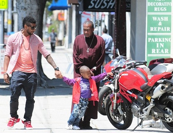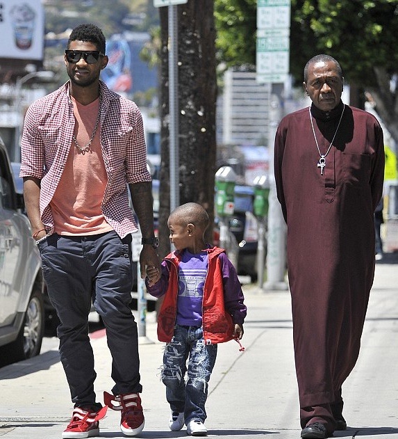 Usher Raymond took his 3-year-old son Usher V (Cinco) for a walk in L.A. yesterday (June 1). And they brought Usher’s godfather, 64-year-old actor Ben Vereen, along as well.