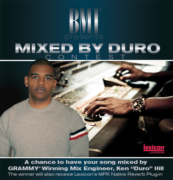 BMI Presents: Mixed By Duro, a contest for BMI-affiliated songwriters/producers to submit a song for professional mixing by six-time Grammy Award-winning mix engineer Ken “Duro” Ifill. A BMI executive, using input from Duro, who is CEO of Desert Storm Records, will pick five top submissions and choose one winner, who will also receive a Lexicon MPX Native Reverb Plug-in. Song submissions must have a contributing BMI writer with at least 1/3 ownership of the work. For details on where to submit a song and rules of the contest, visit http://bit.ly/xFv7n9