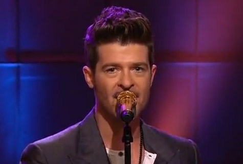 Robin Thicke brought his soulful stylings to “The Tonight Show with Jay Leno” on Tuesday. The “Duets” star performed his latest single “All Tied Up” off his album Love After War. He was recently back in the lab with The Neptunes cooking up some new music. Check out Thicke’s performance below…