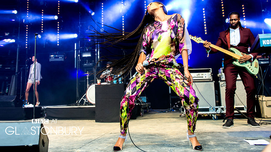 Once again rocking her signature long braids, and a very colorful matching pant/shirt ensemble, watch Solo impress the Worthy Farm crowd with her groovy single “Losing You.”